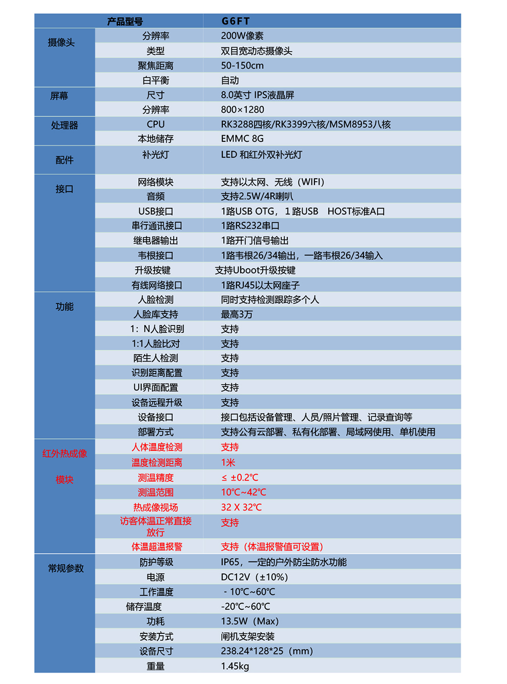 杭州任聯(lián)G6FT立式人臉測溫終端,采用瑞芯微RK3288/RK3399/高通MSM8953高性能硬件平臺(tái),搭載工業(yè)級(jí)雙目攝像頭和人臉活體識(shí)別技術(shù),以及紅外熱成像模塊,并支持身份證讀卡器、指紋儀等多種外設(shè)擴(kuò)展,可應(yīng)用于閘機(jī)通道和門禁考勤,實(shí)現(xiàn)人員的安全、高效的進(jìn)出控制。